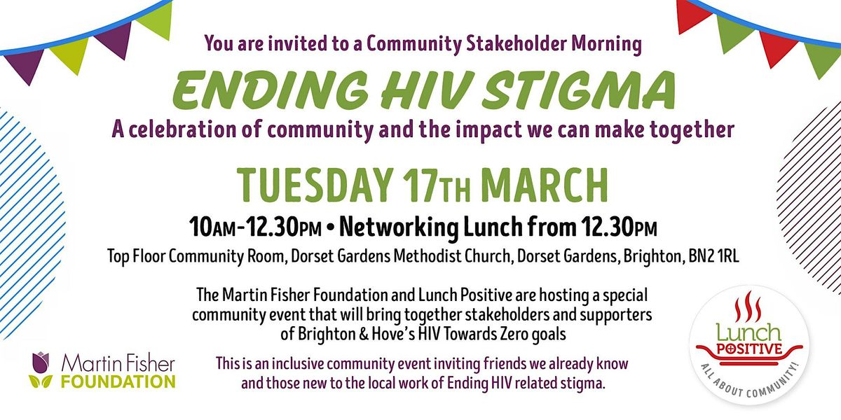 This event is hosted in partnership by HIV charities The Martin Fisher Foundation and Lunch Positive as part of the Brighton & Hove Fast Track City Taskforce.