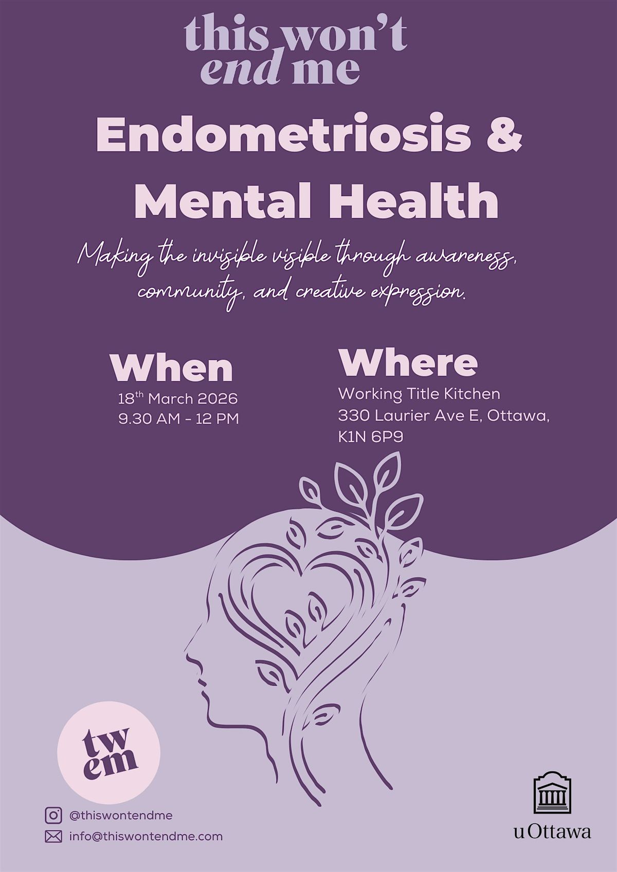 Join This Won't End Me and ReaCH Lab for a meaningful morning dedicated to raising awareness and fostering connection around the often-overlooked link between endometriosis and mental health. This special event brings together community, research, conversation, and creative expression to help make the invisible visible.