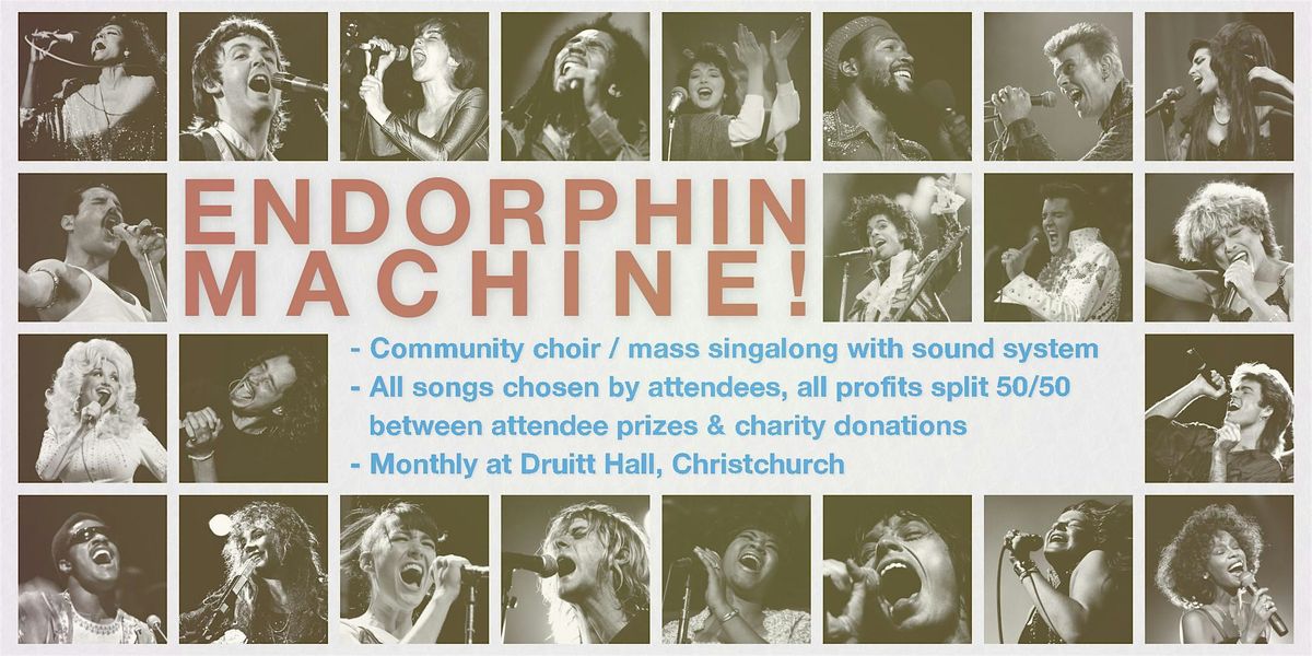 More of a mass singalong with sound system than a traditional community choir, ENDORPHIN MACHINE! (named after the Prince track 'Endorphinmachine') is designed to be a pure-fun experience where people come to blast out well-loved popular songs together.
