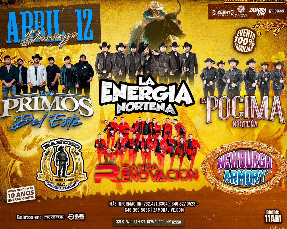 Don't miss ENERGÍA NORTEÑA, PRIMOS DEL ESTE, POCIMA NORTEÑA, BANDA RENOVACIÓN JUNTOS EN NEW YORK! happening at Newburgh Armory Unity Center, Newburgh, NY, United States on 2026-04-12T11:00:00-05:00. A great evening with good music and a laid-back atmosphere awaits you. Invite your friends for a night out! **Event Details:** * **Location:** Newburgh Armory Unity Center, Newburgh, NY, United States Reserve your place now for an unparalleled exciting experience. #ENERGÍANORTEÑA,PRIMOSDELESTE,POCIMANORTEÑA,BANDARENOVACIÓNJUNTOSENNEWYORK! #event #exciting #NewburghEvents #NYEvents