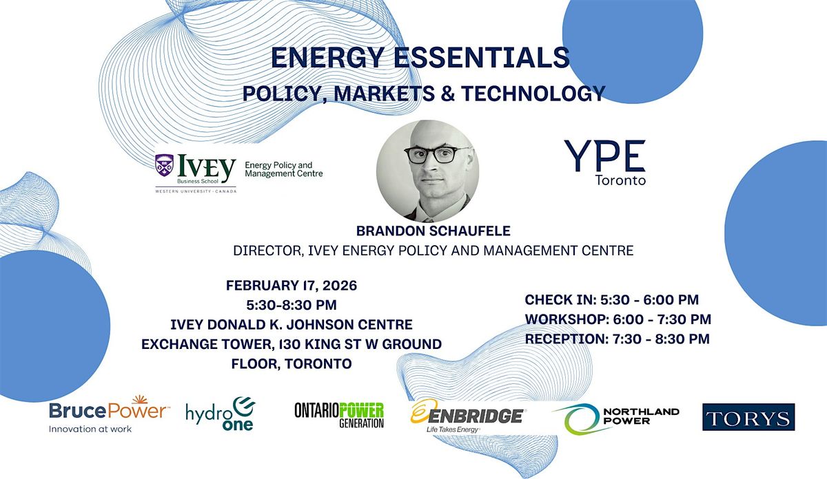 Join us for the first workshop of 2026 for an event hosted in partnership between YPE Toronto and the Ivey Business School's Energy Policy and Management Centre! Whether you’re new to the industry or looking to refresh your foundation, this session will equip you with the knowledge you need for the year ahead. Dive into energy 101 with YPE Toronto and the Ivey Business School's Energy Policy and Management Centre's workshop!