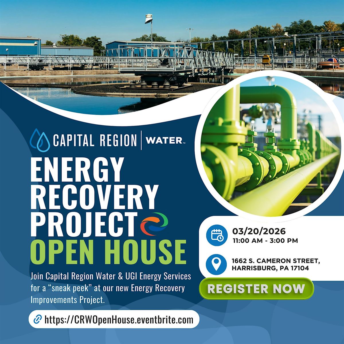 Capital Region Water and UGI Energy Services invite you to a special "Sneak Peek" Open House to celebrate a major milestone in our sustainability journey: the Energy Recovery Improvements Project.