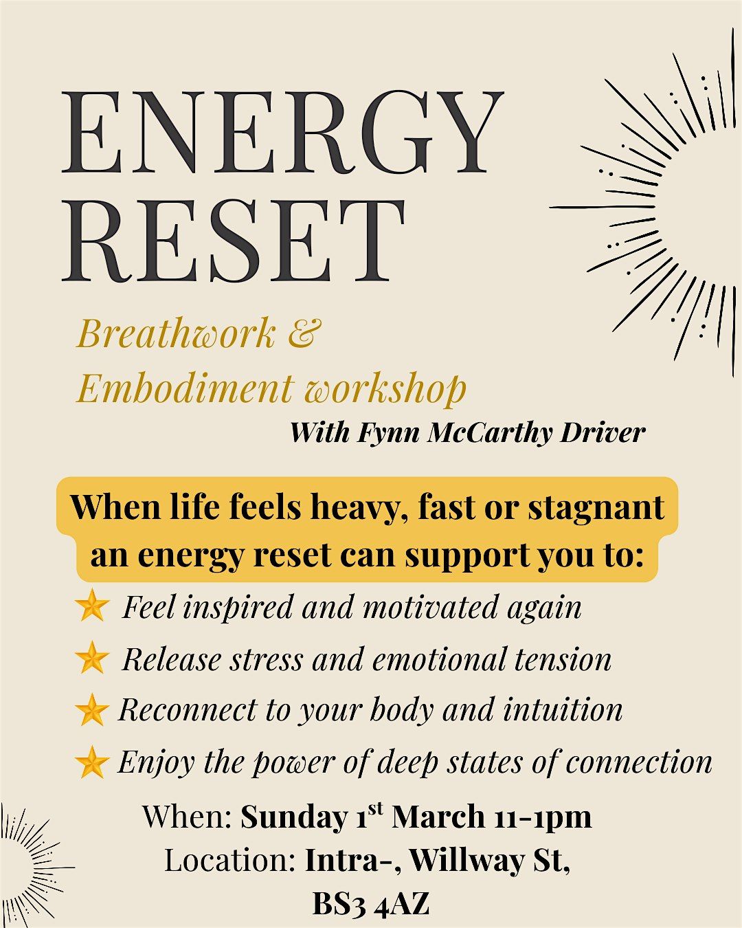 This workshop brings together embodiment and breathwork to support deep reconnection with yourself while releasing stress, emotional tension, and mental overwhelm. No experience is needed — just come as you are, breathe, and allow yourself to reset.