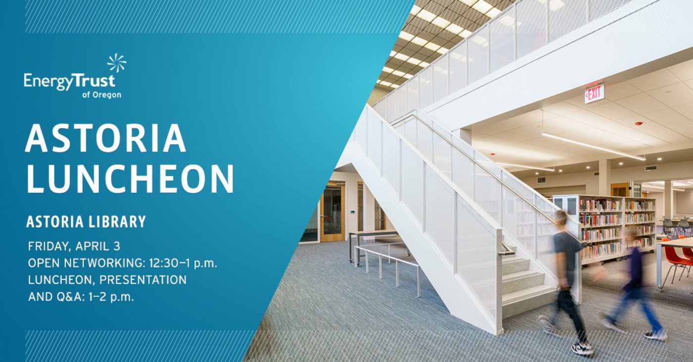 Come join us on Friday, April 3, for a special in-person presentation and networking event at Astoria Library—a case study previously enrolled in the New Buildings program. Attendees will enjoy a catered lunch and a discussion by Energy Trust of Oregon’s commercial programs on available incentives and program updates that can help you meet your project’s energy efficiency goals on the coast and across the state.