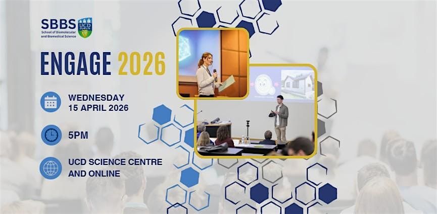 We are delighted to invite you to the ENGAGE 2026 Grand Final annually hosted by the UCD School of Biomolecular and Biomedical Science which will take place on Wednesday 15th of April 2026 at 5pm in the Moore Auditorium in the UCD O'Brien Centre for Science, followed by food and drink.