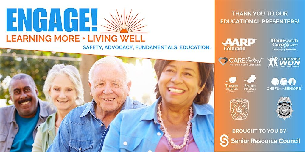 A BIG THANK YOU to all our Sponsors: AARP Colorado, Able Care Mobile Therapy, Affordable Medical Supply, BEACON Senior News, Cara Bussell, pHD, CarePatrol of Colorado Springs & Pueblo, Chef for Seniors, Colorado Springs Fire Department, Colorado Springs Police Department, Devoted Health, EPIC Law Group, GRIT Resilience Training, Homewatch Caregivers, Huntington Bank, Independent Home Living, KRDO News Radio, Mobility City, Never Alone Consulting, Peak Memory Clinics, Pikes Peak Area Agency on Aging, Rocky Mountain PACE, TogetherWON, Transition Trio, Trustee and Estate Services Group, and UCCS Aging Center.