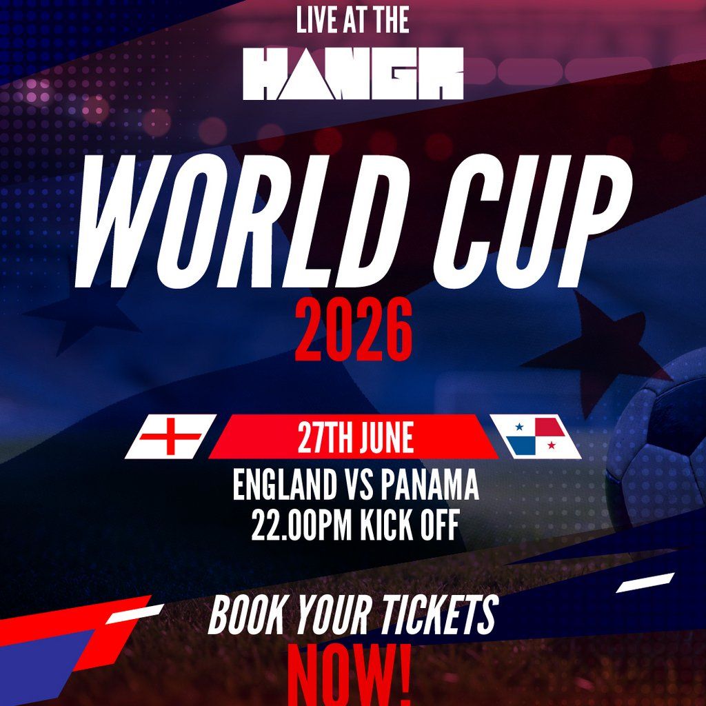 England vs Panama - final 2026 World Cup group game! Live at The Hangr on Saturday 27th June with 10:00 PM kick-off. Buy your tickets now!