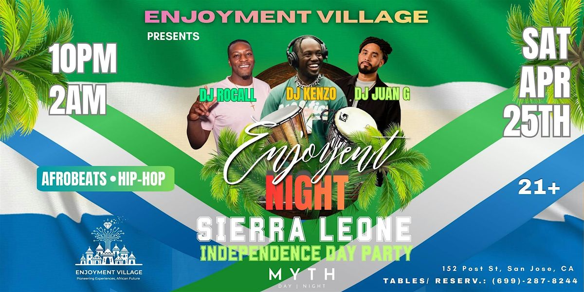 Enjoyment Village is taking over April 25th for a night of Afrobeats, Hip-Hop, and good vibes with DJ Kenzo, DJ Juan G, & DJ Rocall!