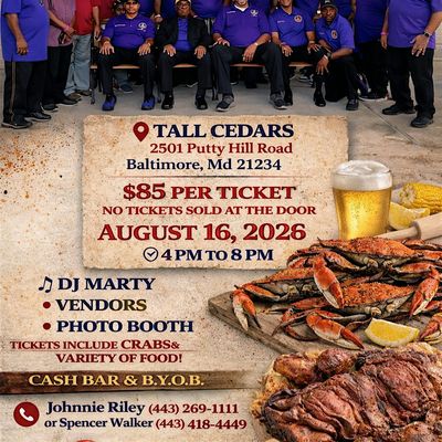 Get ready for a fun afternoon filled with delicious crab and good company at 2501 Putty Hill Ave. Mark your calendar for August 16, 2026 at 4:00 PM (Eastern Daylight Time). This in-person event is perfect for catching up with friends and enjoying some great food in a relaxed setting. Don't miss out on the tasty eats and lively vibes!