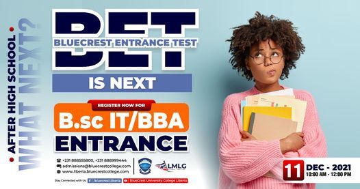 BlueCrest University College Liberia, announces "BlueCrest Entrance Test" (Spring-2022) for admissions in1. Bachelor of Science in Information