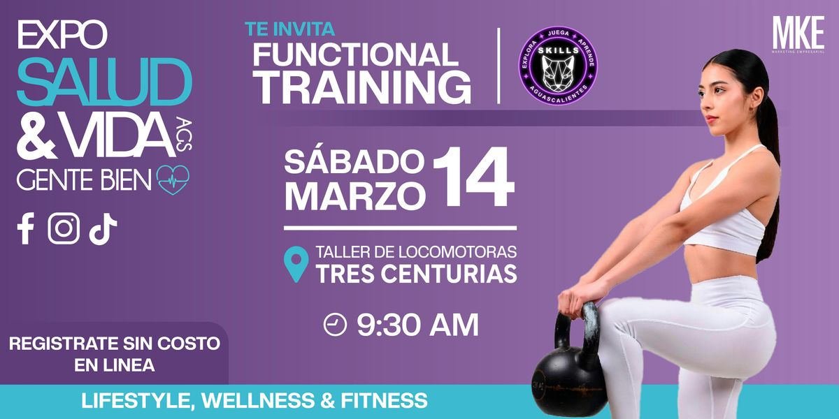 Clase muestra gratuita de ENTRENAMIENTO FUNCIONAL impartida por el gimnasio SKILLS ENTRENA en EXPO SALUD & VIDA AGUASCALIENTES