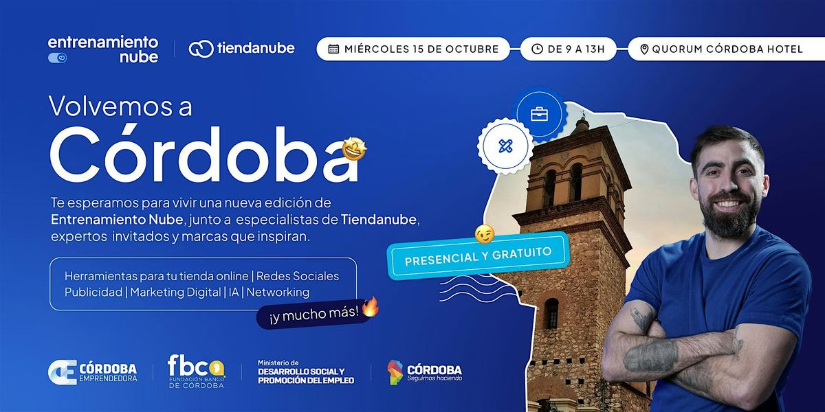 Tiendanube vuelve a Córdoba con una nueva edición presencial de Entrenamiento Nube, un evento gratuito de formación y networking pensado para la comunidad de emprendedores y marcas locales que buscan llevar su negocio al siguiente nivel.