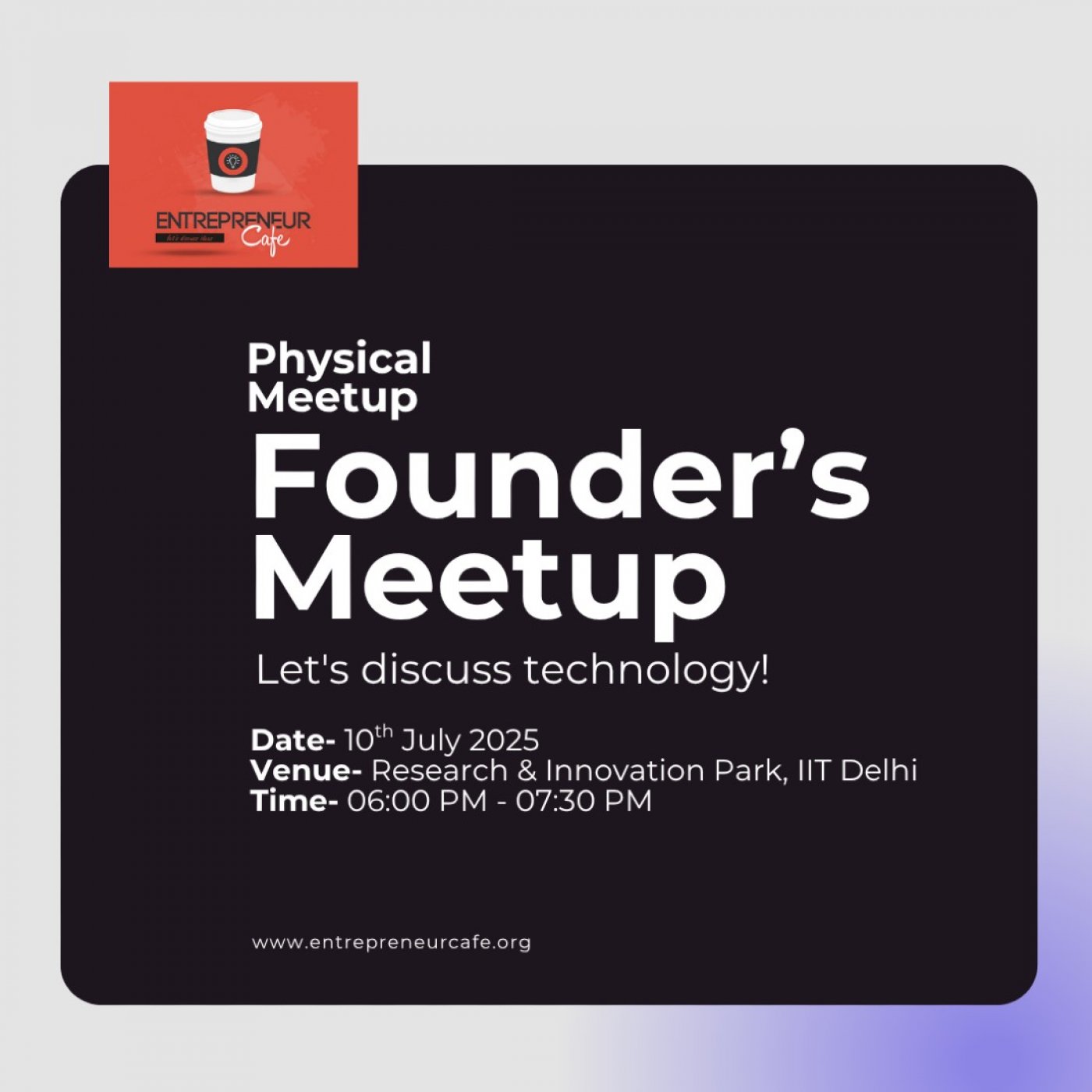 We're excited to invite you to Entrepreneur Cafe Cluster Meetup Delhi NCR__ – a chance to dive deep into the world of technology and connect with fellow founders & investors!