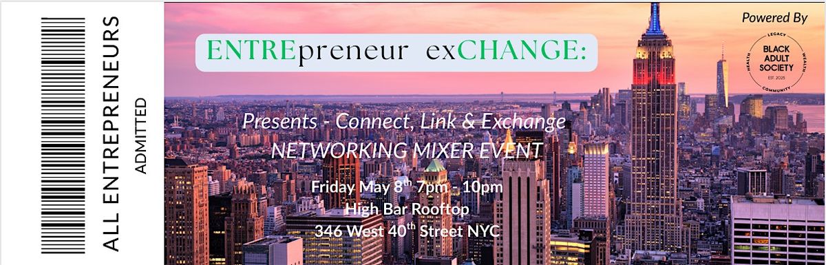 ENTREpreneur exCHANGE - Presents - Connect, Link & Exchange. NETWORK MIXER EVENT | 7pm - 10pm Friday May 8th @ High Bar RooftopAbout this Event