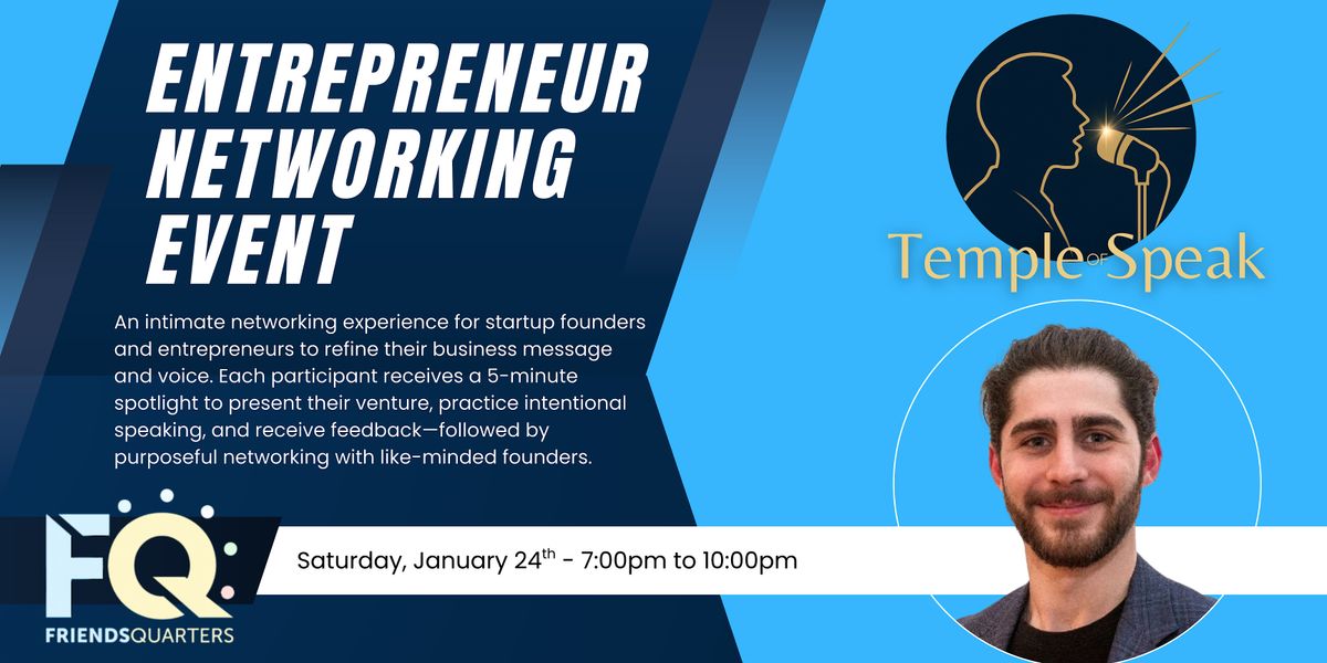 Temple of Speak presents an intimate networking experience for startup founders and entrepreneurs who want to refine both their business message and their speaking presence.