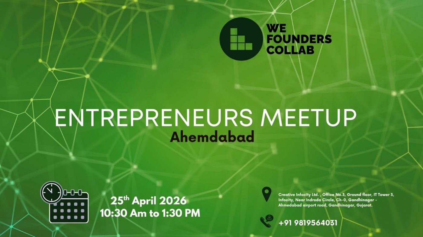 Entrepreneurs Meetup by We Founders Collab Ahmedabad 2026 Event Description Entrepreneurs Meetup powered by We Founders Collab is a vibrant gathering designed exclusively for entrepreneurs seeking networking opportunities and valuable connections. Join us to: