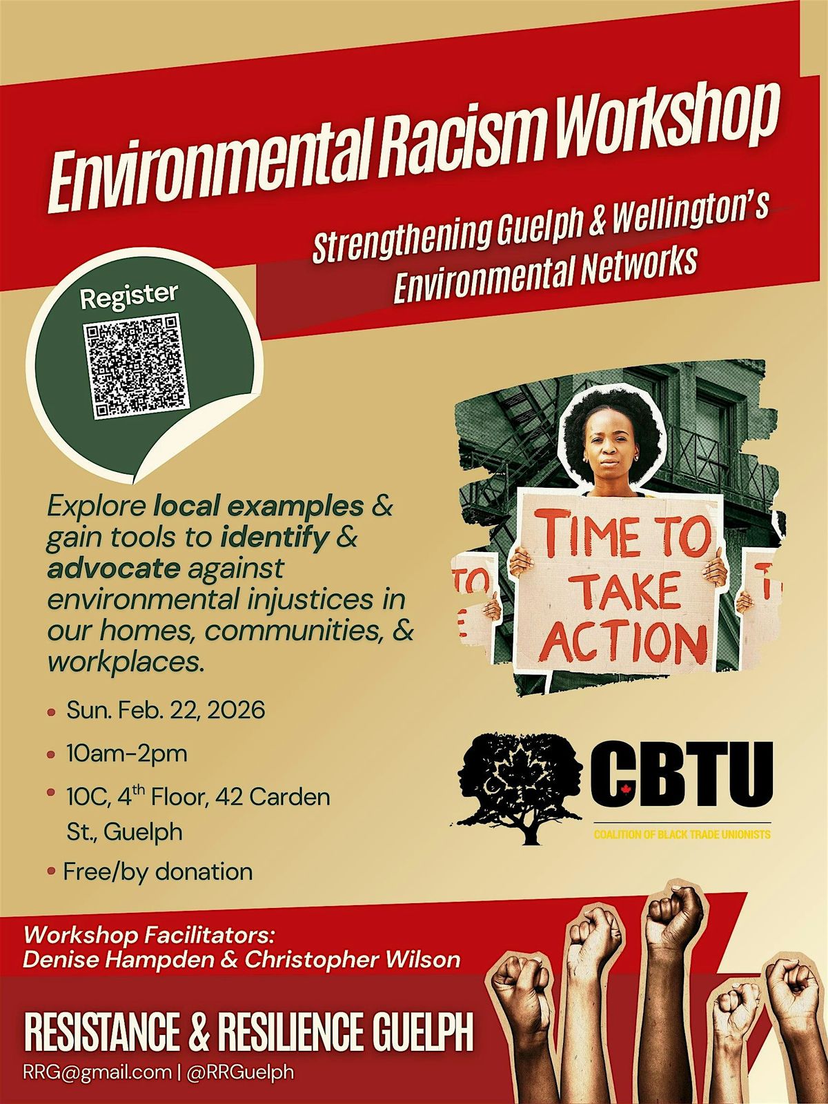 The workshop will be facilitated by Denise Hampden and Christopher Wilson (CBTU), who bring experience in environmental justice education, community organizing, and advocacy.