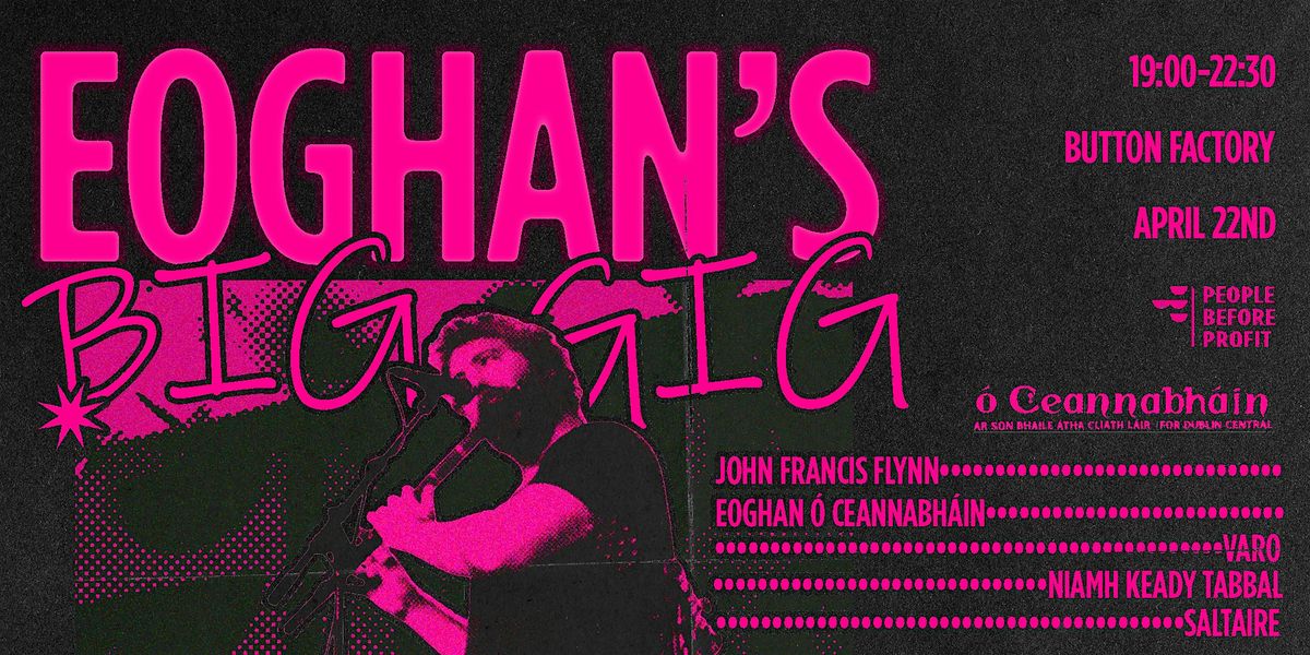 Join Eoghan Ó Ceannabháin and People Before Profit for a fundraiser gig for the upcoming Dublin Central by-election. We have a major opportunity to get rid of Fine Gael and Fianna Fáil in Dublin Central and win a seat for the radical left. A win for Eoghan doesn’t just mean one more TD against the government in the Dáil. It would mean electing a campaigner who will fight for a city we can live in, not just survive in.