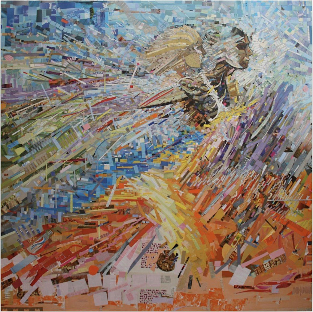 This linked exhibition traces the evolution of Aliyu's artistic practice: from evocative figurative painting, to increasingly abstracted and fragmented forms of ‘collaged paintings’ that redefine and transcend artistic media. His innovative, ingeniously subversive use of found materials reflects sociopolitical and economic realities. Informed by his academic research, his vast, all-encompassing maelstrom-like works are meticulously assembled from scraps of imported consumer goods packaging: a technique he first developed as a Fine Art student at Ahmadu Bello University, when IMF-imposed austerity measures limited access to art materials.