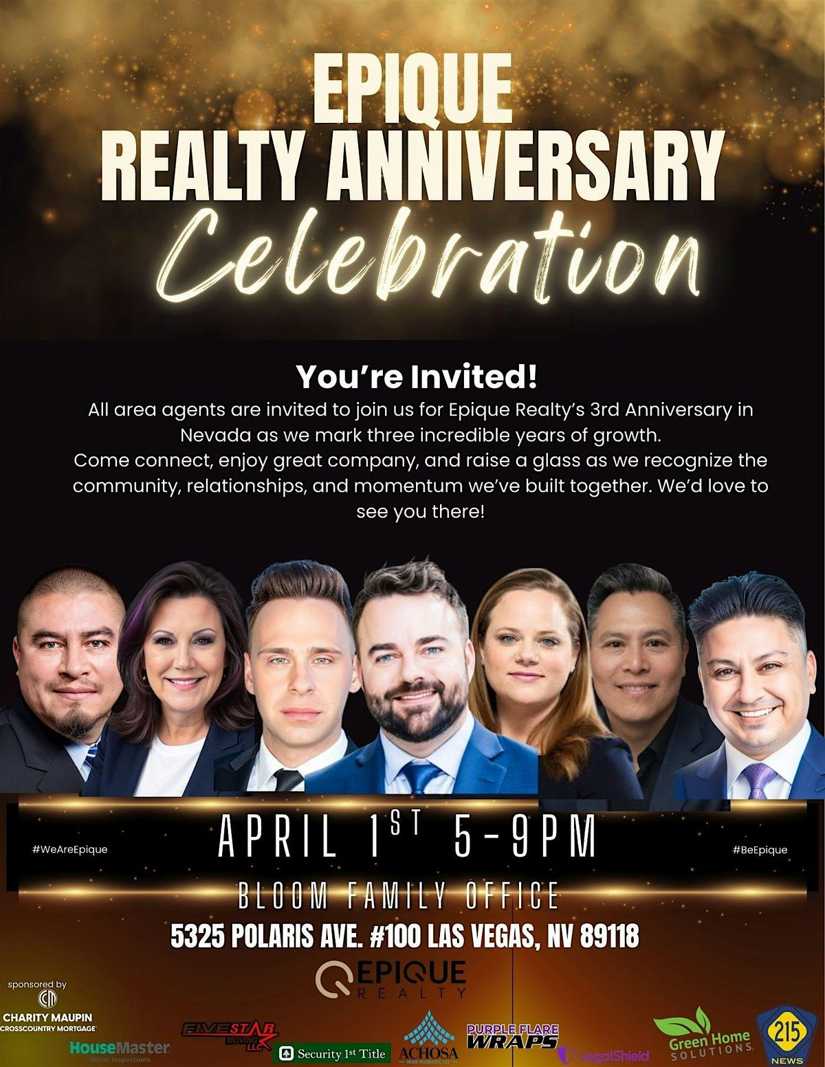 All area Realtors are invited to join us for Epique Realty’s 3rd Anniversary in Nevada as we mark three incredible years of growth.