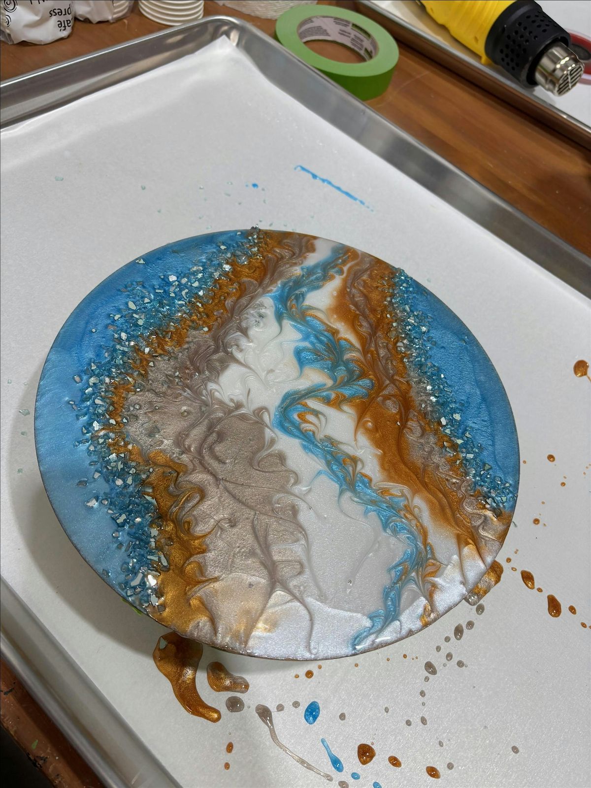 Join us for a super fun in-person workshop where you'll dive into the world of Epoxy Geode Art! Get your hands messy and create stunning, shiny geode designs using epoxy resin. Whether you're a beginner or just looking to try something new, this event is perfect for unleashing your creativity. Meet cool people, learn awesome techniques, and take home your very own geode masterpiece. Don’t miss out on this colorful adventure!