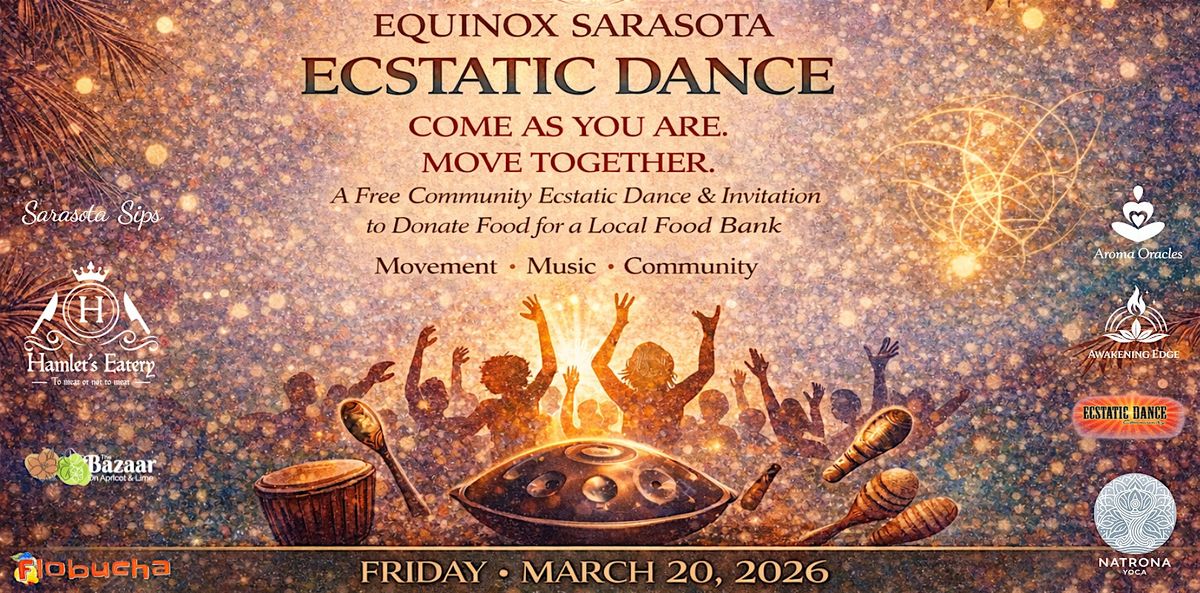 We’ll begin in the outdoor courtyard with grounding yoga led by Joshua Redmond (Natrona Yoga & Flobucha), helping you open your body to fresh energy and align with the season’s natural renewal. From there, flow into a heart-opening Ecstatic Dance journey guided by Kelly Atkins (DJ Kat) — founder of Ecstatic Dance Sarasota and an internationally recognized movement facilitator.