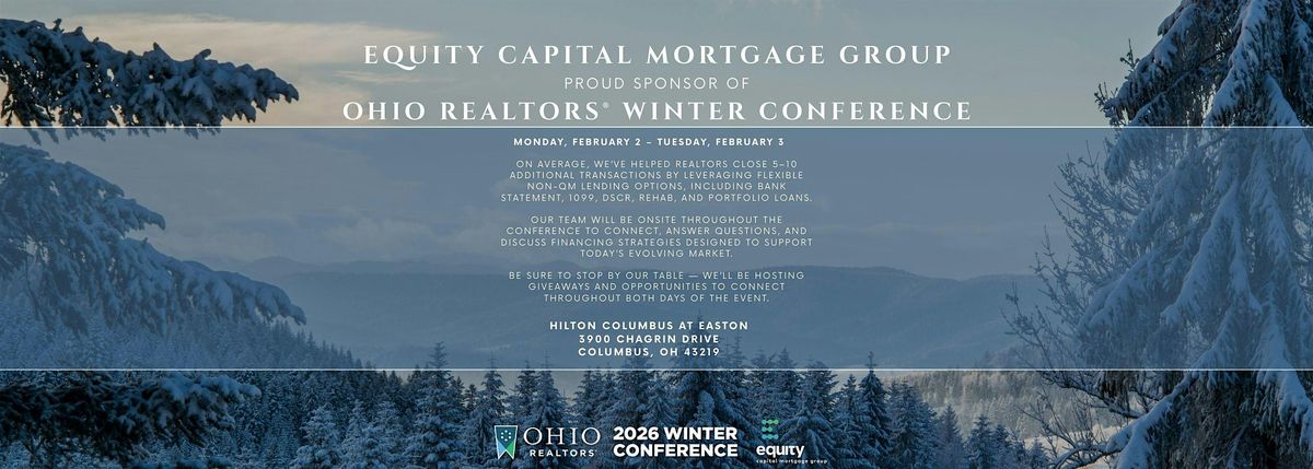 Equity Capital Mortgage Group is proud to be a sponsor of the Ohio REALTORS® 2026 Winter Conference, taking place February 2–3 in Columbus.