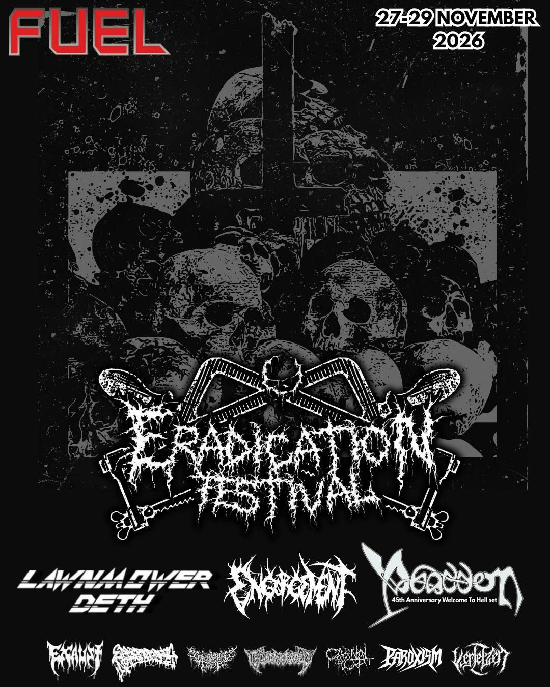 Wales' premier extreme metal event Eradication Festival returns to Fuel Rock Club, Cardiff 27th-29th November 2026. Grab your tickets to Wales' longest running underground heavy metal festival. Death metal, black metal, thrash metal, grindcore & beyond. Disclaimer: