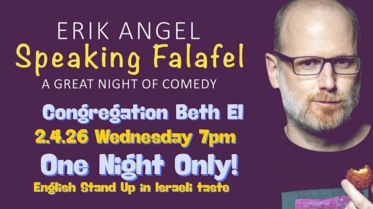 Erik Angel is an American Israeli comedian who is based in New York and travels the world with his Comedy for Peace project and his solo show- Speaking Falafel. Angel's comedy is very surprising, clever, high energy, and deals with being an Israeli during these hard times, recent immigrant, fortyish, a new immigrant, Jewish that has to speak English 24/7.