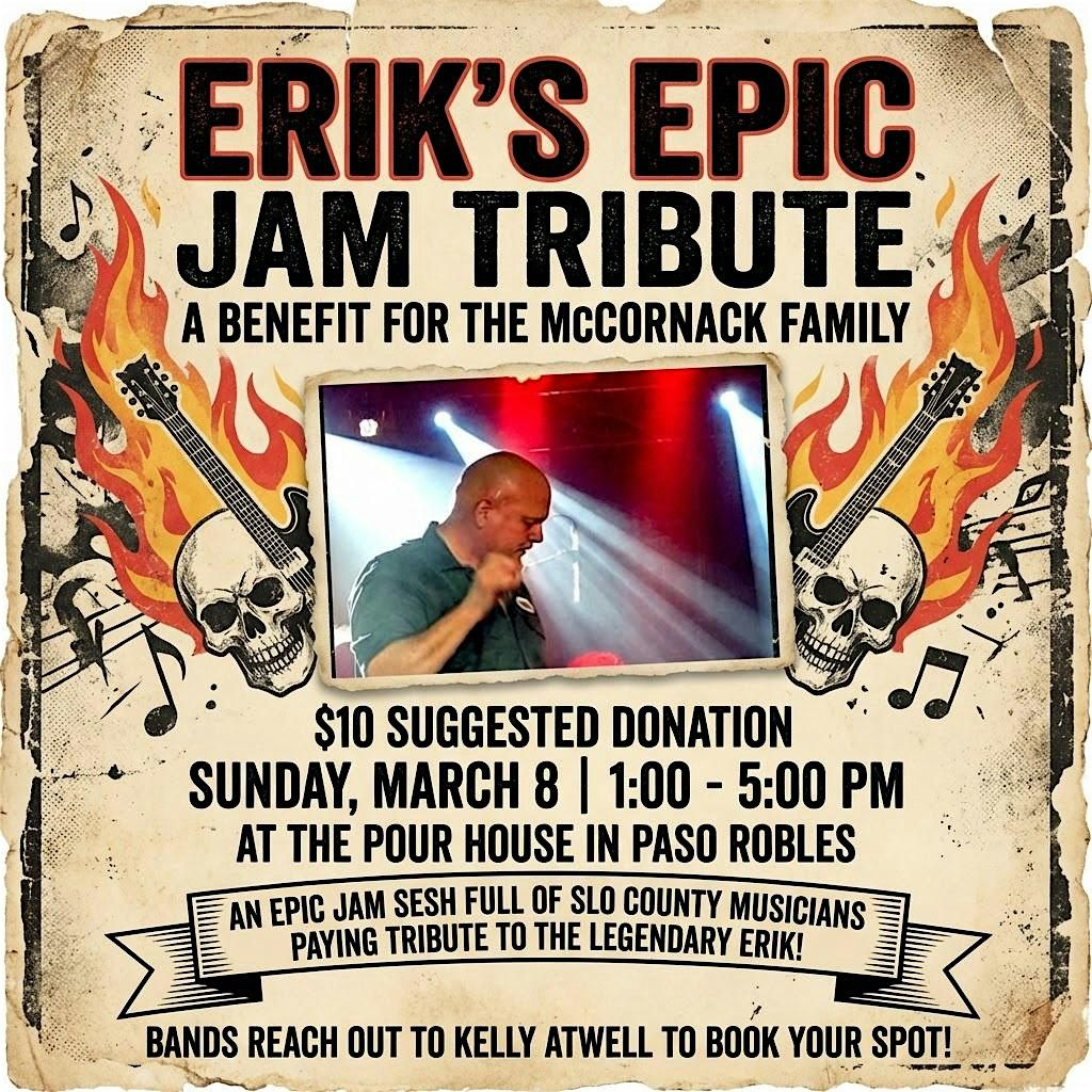 This will be an EPIC JAM session with tons of musicians that have played with Erik over the years! Bands are welcome to take the stage for two songs and should reach out to Kelly Atwell for booking a time slot. All money raised from ticket and food sales will go to Christina McCornack to help with expenses since losing her beloved husband. We are going to keep Erik's spirit alive by honoring him the best way we know how- through rock n roll, baby! SHOCKALOCKA DING DONG!