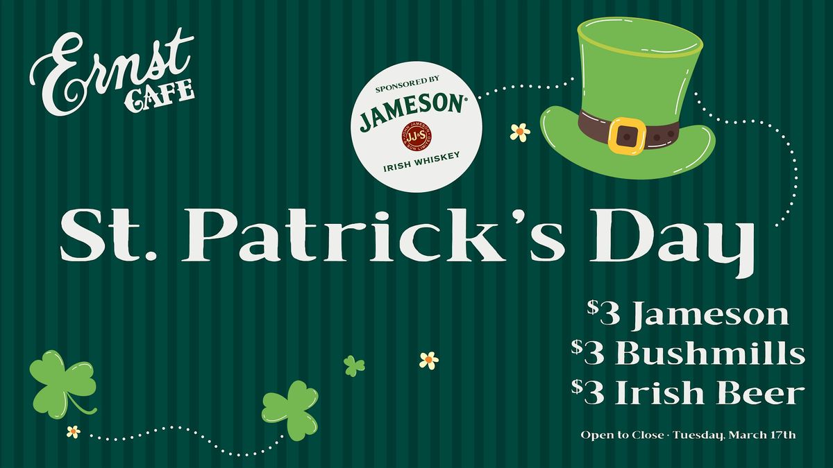 Get lucky at Ernst Café this St. Patrick’s Day! Sip $3 Jameson and Bushmills shots, enjoy $3 Irish beers, and grab $4 Jell-O shots while soaking up the festive vibes just minutes from Bourbon Street. We’re partnering with Jameson and will be handing out Jameson swag giveaways. Dress in green, grab your friends, and celebrate with hearty fare, lively drinks, and plenty of Irish cheer. Come for the drinks, stay for the fun! 🍀🍻