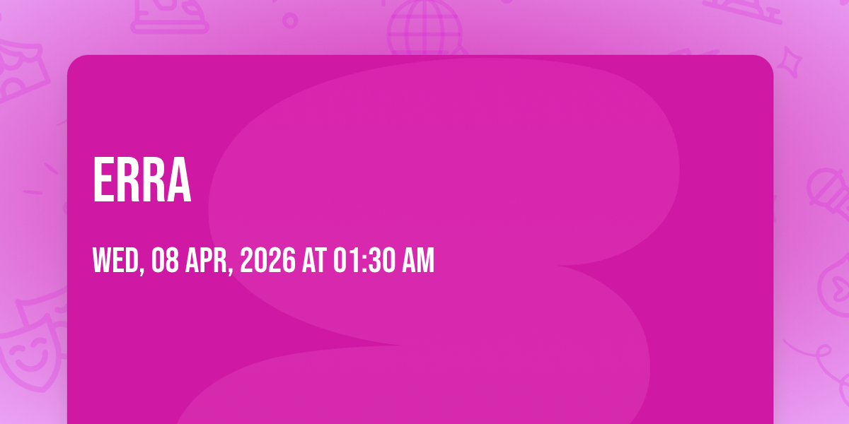 📍 Location: 47.5879, -122.334🌟 Be part of history at ERRA, an extraordinary gathering that will captivate your imagination! 🏛️ The prestigious Showbox SoDo in Seattle, WA sets the stage for an unforgettable experience on April 8th, 2026 at 01:30 AM. ✨ They are bringing together the finest elements of entertainment and innovation to create moments that will take your breath away. From the moment you arrive, you'll be immersed in an atmosphere of wonder and excitement. 🎯 This carefully planned event ensures every guest experiences something truly special. 🎊 Early booking is recommended for this must-attend event of the season!