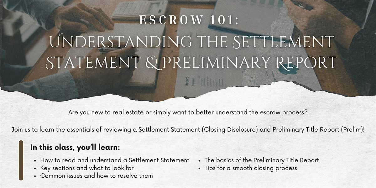 Are you new to real estate or simply want to better understand the escrow process? Join us to review the Settlement Statement & Prelim