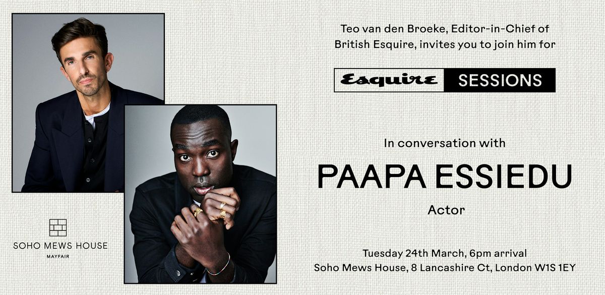 Join us on Tuesday 24 March at 6pm at Soho Mews House(8 Lancashire Ct, London W1S 1EY) for an intimate conversation between Esquire’s Editor-in-Chief, Teo van den Broeke, and acclaimed British actor Paapa Essiedu.