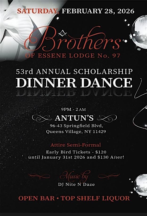 Come and join the Brothers of Essene Lodge No. 97 for our Annual Scholarship Dinner Dance.About this Event