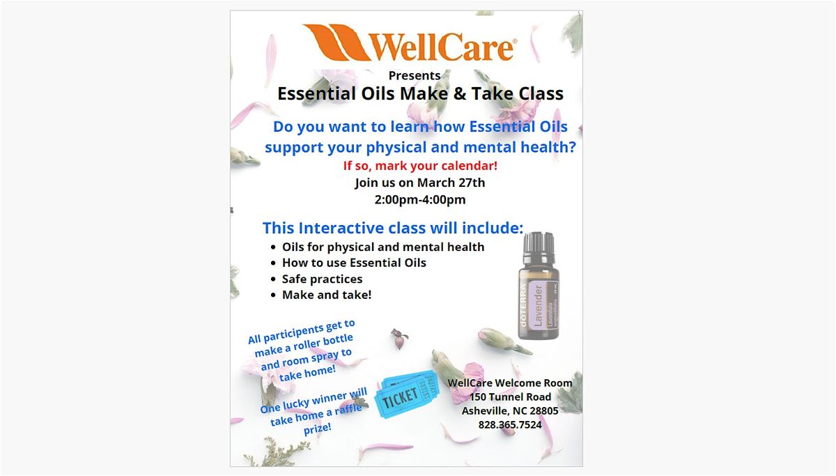 Welcome to our Essential Oils Make & Take Class! Join us for a fun and interactive workshop where you'll learn all about the benefits of essential oils and how to incorporate them into your daily routine. This hands-on class will teach you how to create your own custom blends for relaxation, energy, immunity, and more.