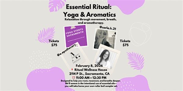 Welcome to Essential Ritual: Yoga & Aromatics at Ritual Wellness House! Join us on February 8, 2026 at 11:00 AM for a rejuvenating experience. Unwind with a blend of yoga and aromatics to soothe your mind and body. Let's come together to find inner peace and relaxation. See you there!