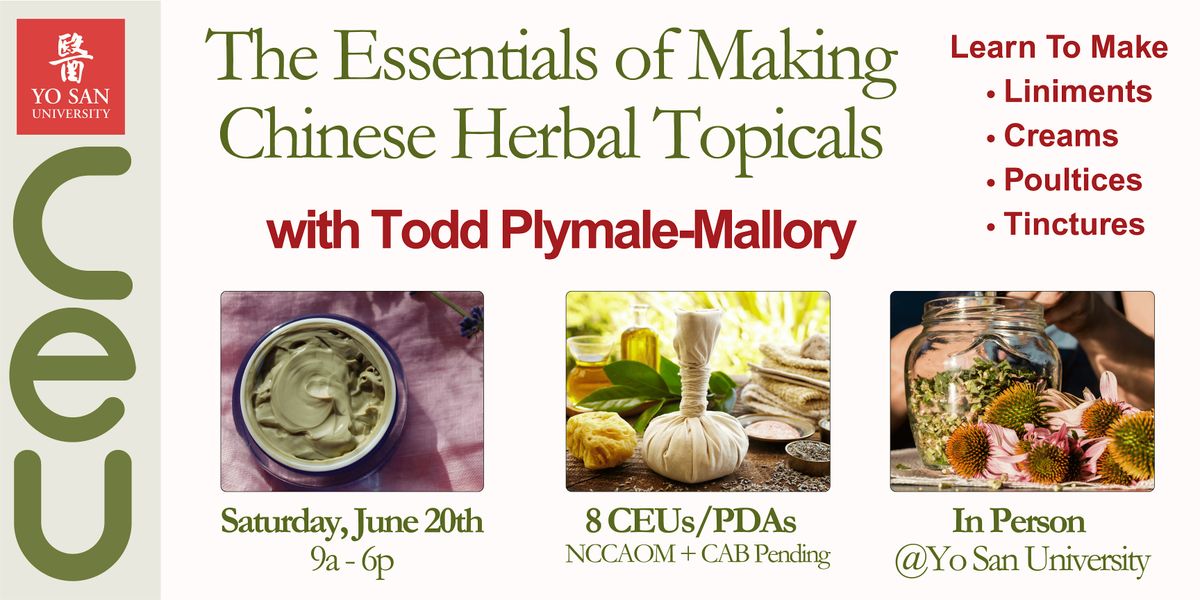 Join us for a hands-on workshop exploring the production and use of Chinese Herbal Topicals. You'll learn how to create liniments, creams, poultices, and tinctures for various topical applications, addressing conditions like pain, inflammation, sunburn, and eczema. In this class, we'll guide you through the process of using raw herbs to make die da jiao (a renowned martial arts tincture), a black paste poultice for trauma, and other creams for different uses.