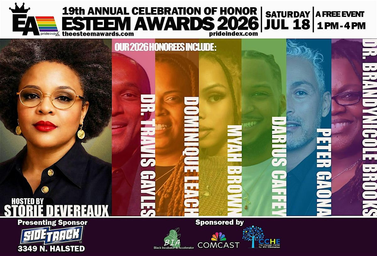 Join us for an afternoon at Sidetrack 3349 N Halsted St where we honor individuals who have made a significant impact in their communities. The Esteem Awards recognize those who have shown outstanding dedication and commitment to serving others. This in-person event promises to be a memorable afternoon filled with inspiring stories, heartfelt speeches, and well-deserved recognition. Come dressed to impress and be prepared to be inspired by the incredible individuals being honored. Don't miss out on this special occasion to celebrate and uplift those who are making a difference in the world!