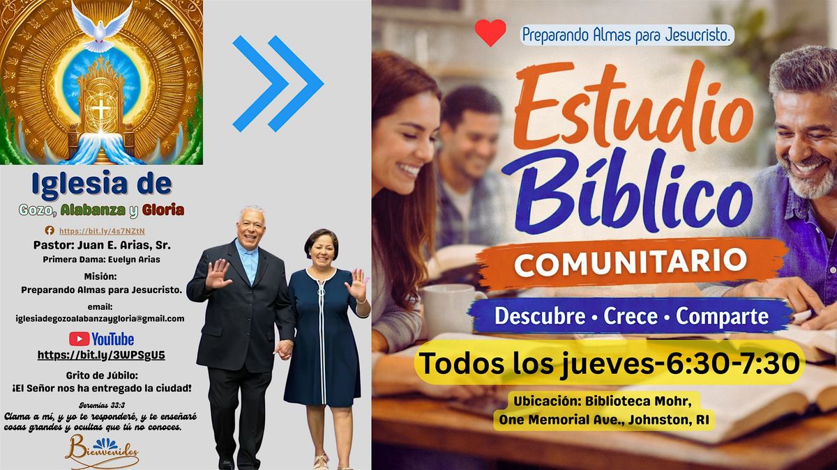 Únete a nuestro estudio bíblico comunitario. Descubre la fe, crece espiritualmente y conéctate con una comunidad acogedora. ¡Ven y crece con nosotros mientras estudiamos la Biblia y llegamos a conocer a Dios personalmente! No se necesita conocimiento previo de la Biblia, aprenderemos juntos.