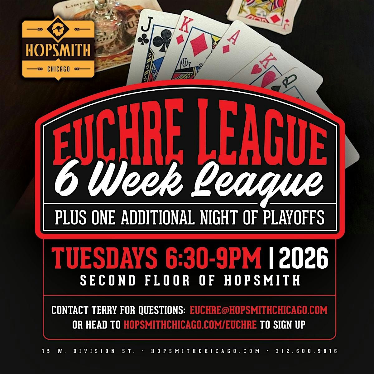 Think you’ve got what it takes? Chicago's favorite Euchre League is back at Hopsmith, starting Tuesday, April 21st! Games run every Tuesday from 6:30PM – 9:00PM, wrapping up with the final showdown on June 2nd.