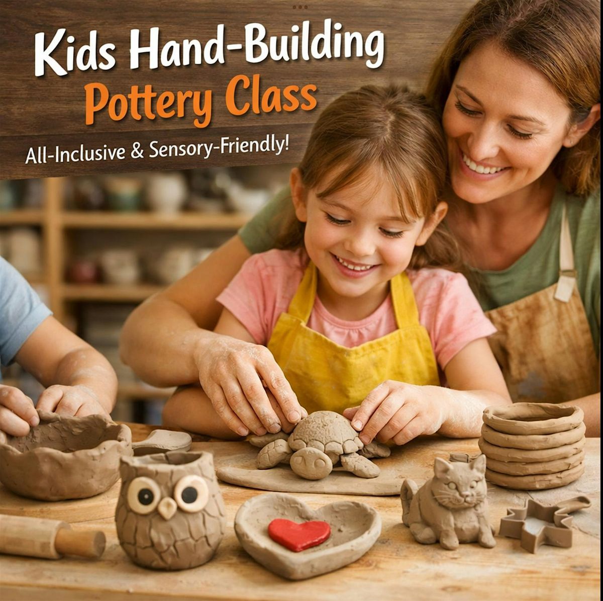This all-inclusive hand-building pottery class is designed for children of all abilities—including neurotypical, neurodivergent, and special needs children—alongside a parent or guardian.