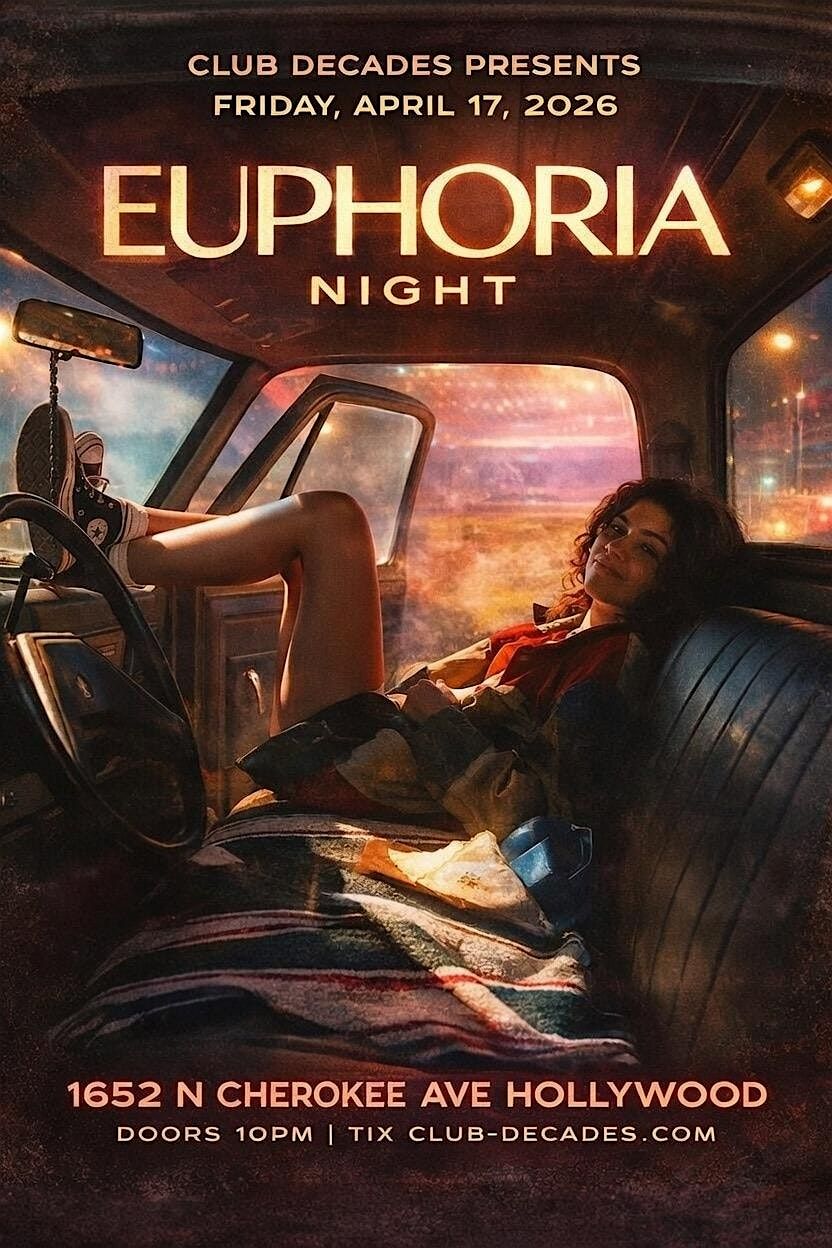 Dress in your boldest Euphoria-core fits—glitter eyes, rhinestones, mesh, mini skirts, oversized hoodies, vintage sneakers, thrift-store glam, and outfits that scream “I’m not going home anytime soon.” Grab your friends, pile into the car, and come live out your main-character moment under the lights of Hollywood.