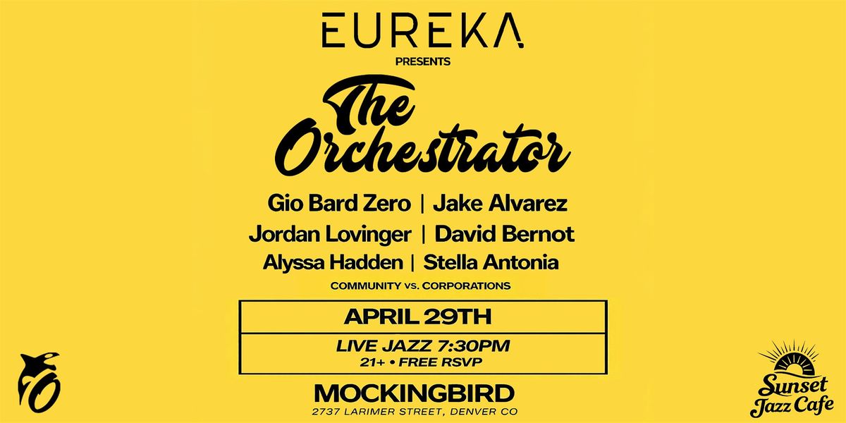 Live jazz, Sponsored by Eureka Vapor, Free RSVP w/ The Orchestrator, David Bernot, Jake Alvarez, GioBardZero, Alyssa Hadden, Stella AntoniaAbout this Event