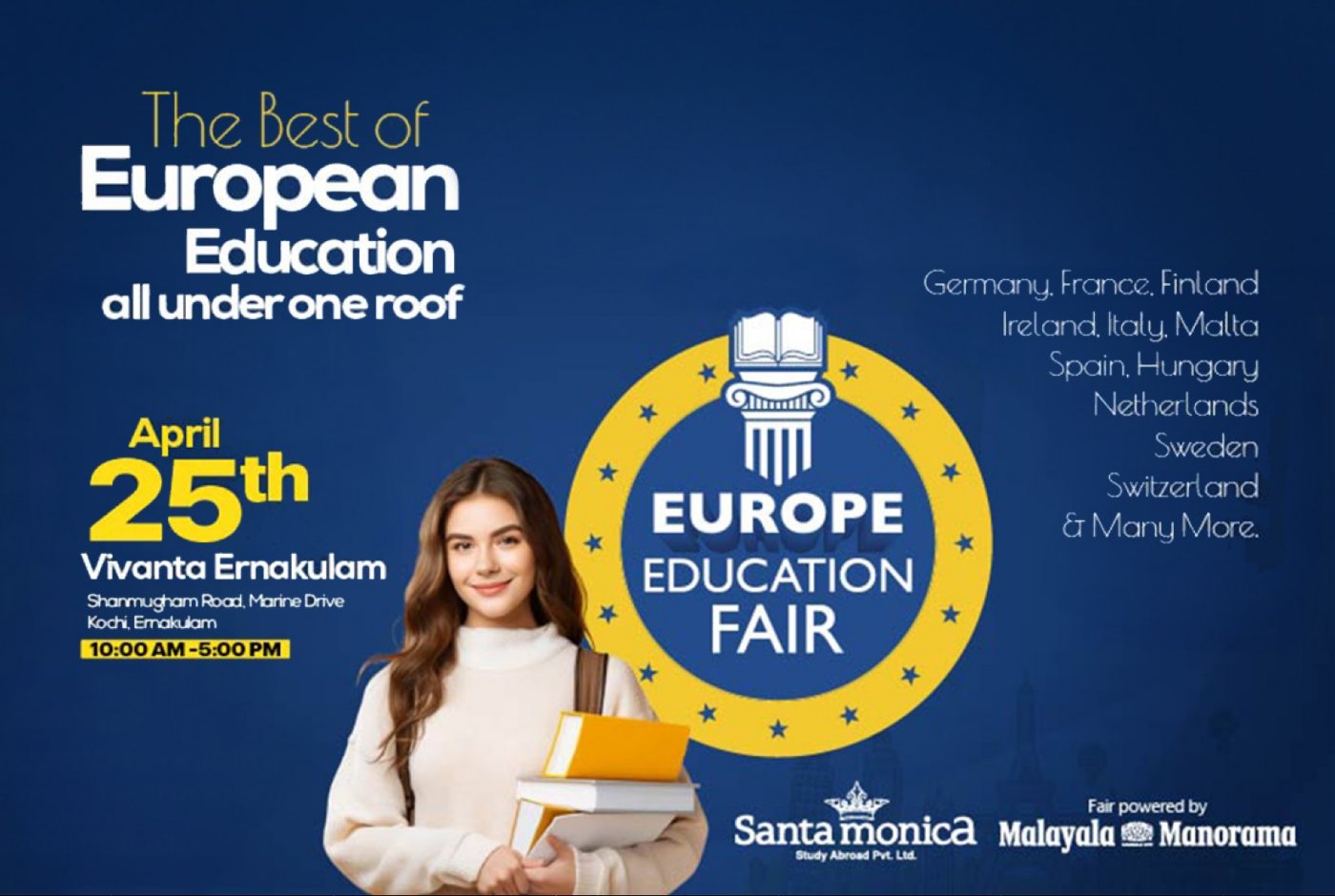 Come to the unique Europe Education Fair in Kochi, which is organized by Santa Monica Study Abroad Pvt. Ltd. Discover study options in nations including Germany, France, Ireland, Italy, Finland, Malta, Spain, the Netherlands, Sweden, Switzerland, and more by meeting officials from leading institutions and colleges throughout Europe. Get professional advice all under one roof on the selection of courses, admissions, scholarships, and visa procedures. This is your opportunity to move on with an international education.