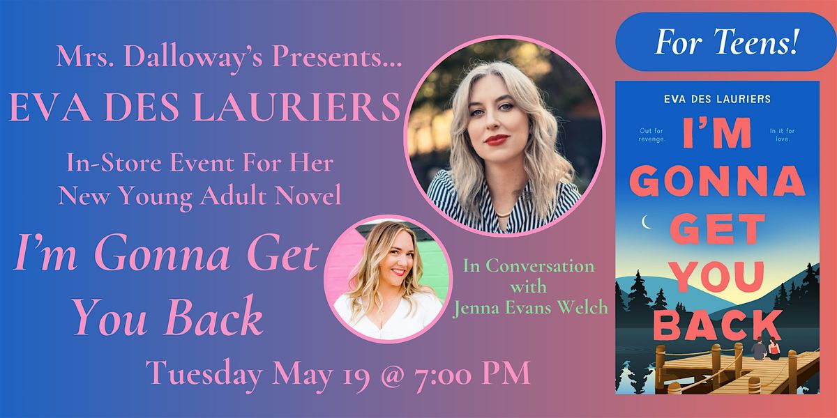 Join us at Mrs. Dalloway's Bookstore on Tuesday, May 19 at 7:00 PM when Oakland author Eva Des Lauriers returns to the store to launch her new young adult novel I'm Gonna Get You Back.
