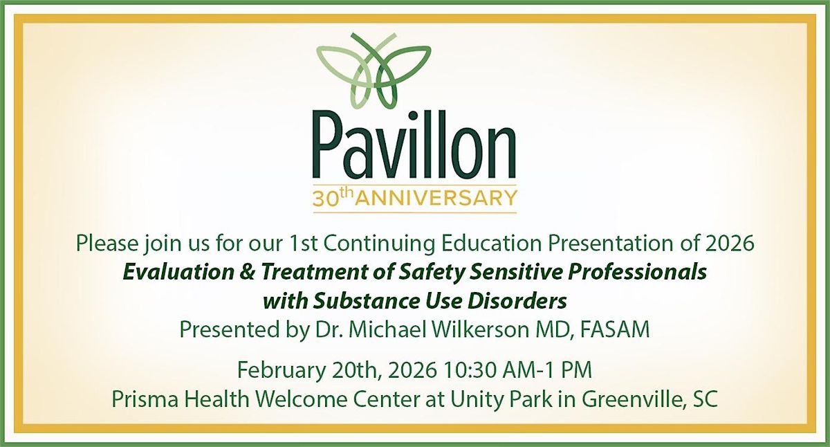 Please join us for the first in a series of CEU presentations in honor of Pavillon's 30th Anniversary. This talk will offer deep dive into the unique challenges faced by safety sensitive professionals dealing with substance use disorders (SUD). This event covers practical evaluation and treatment strategies to support medical, transportation, and public safety professionals; ensuring safety and health for both those individuals and those they may interact with and serve. Don’t miss out on this opportunity to hear this topic presented by Pavillon's own Medical Director, Dr. Michael Wilkerson. Dr. Wilkerson has been working in the field of substance use disorder for over 25 years with a focus on treating healthcare professionals. He has served as the Medical Director and Corporate Medical Director for Bradford Health Services, as Medical Director of Talbott Recovery Center, and as the Medical Director of the North Carolina Physicians Health Program. As a native North Carolinian, Dr. Wilkerson returned to his “home state” when he joined us at Pavillon. Dr. Wilkerson is nationally named a Fellow of the American Society of Addiction Medicine in recognition of his high level of achievement and dedication to the field of addiction medicine. This event will offer 2 CEUs.