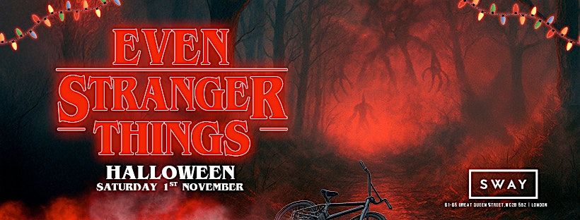 Step into the Upside Down this Halloween for a night of retro thrills, spooky vibes, and nostalgic bangers! The Even Stranger Things Halloween Party is taking over one of Sway’s iconic rooms – and it’s going to be an electrifying throwback celebration like no other.