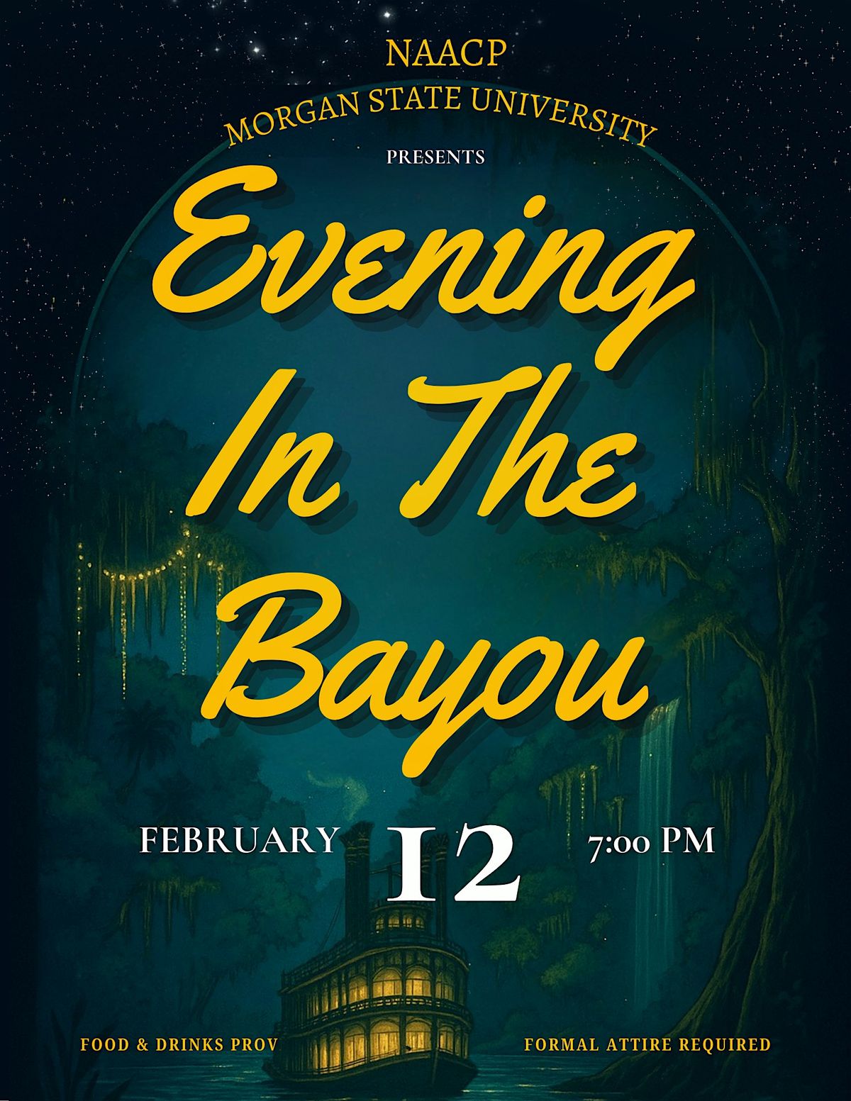 Step into an elegant night of culture, celebration, and community at Evening in the Bayou, a formal gala hosted by the NAACP Morgan State University Unit 7718-B.