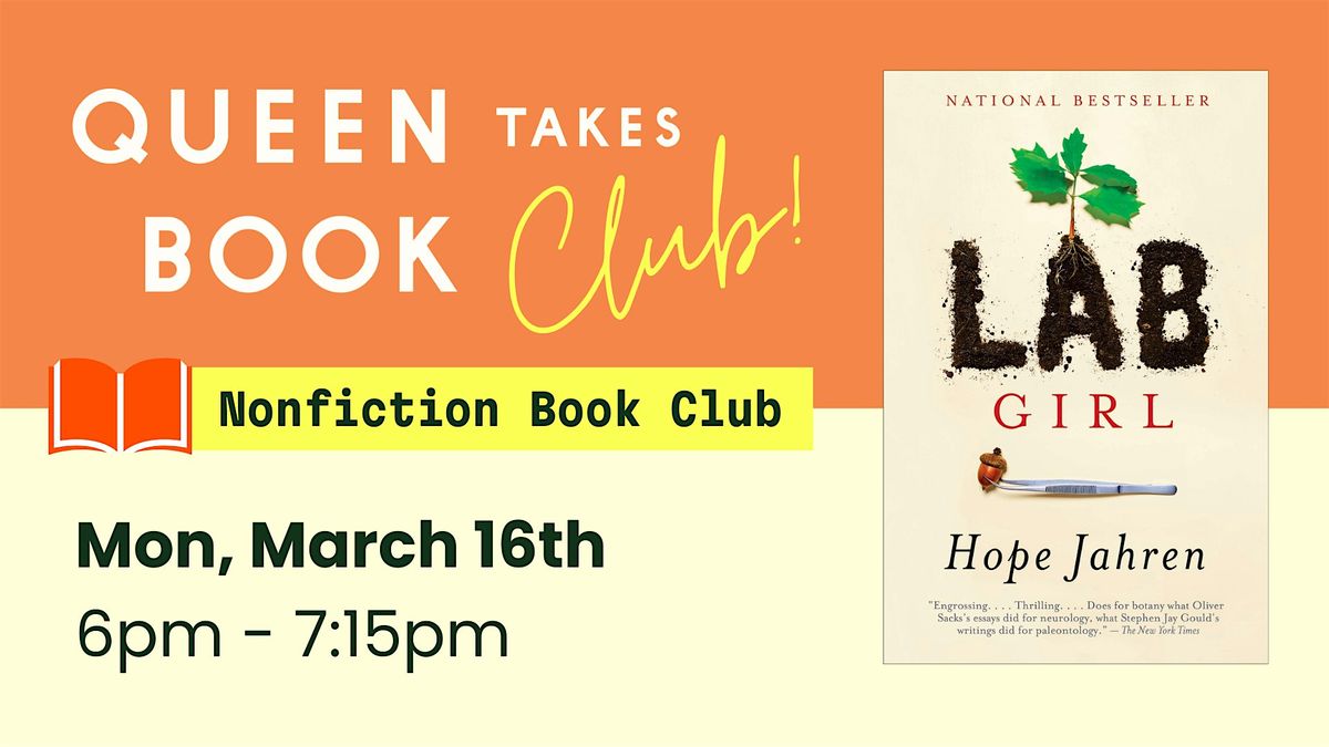 Join us for our Evening Non-Fiction Club on Monday, March 16th at 6:00pm. This month we'll be reading "Lab Girl" by Hope Jahren.